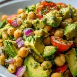 As you step into your kitchen, a world of succulent flavors stirs in the air. The rich buttery aroma of ripe avocados mingles with the crisp freshness of diced cucumber and vibrant bell peppers. You can almost taste the sunshine in every ingredient. A delightful mishmash of textures dances in your imagination: the smooth creaminess of the avocado, the delightful crunch of fresh veggies, and the earthy undertone of chickpeas. This is not just a salad; it’s a celebration, a light burst of joy that brightens your day and nourishes your body.