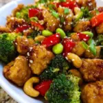 A homemade version of Cashew Chicken that rivals your favorite takeout, featuring tender chicken, crunchy vegetables, and creamy cashews all enveloped in a tangy-sweet sauce.