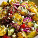 A refreshing and hearty Greek Potato Salad featuring tender potatoes, fresh vegetables, tangy feta cheese, and olives.