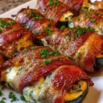 Savory bacon-wrapped zucchini boats filled with creamy cheese, perfect for keto diets and family gatherings.
