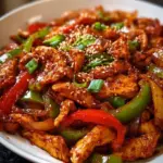 The sizzle of chicken meeting a hot skillet fills the air, releasing an intoxicating aroma that pulls everyone into the kitchen, hearts pounding with anticipation. Colorful bell peppers and glossy onions shimmer under the heat, their vibrant hues promising a glorious explosion of flavor. You stand before a plate of Korean Spicy Chicken Stir Fry, where tender morsels of chicken bask in a luscious, crimson sauce that gleams like treasure. Each bite offers a perfect balance of spice and sweetness, making every moment truly unforgettable.