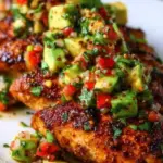 A refreshing Lime Chicken dish perfect for summer gatherings, featuring marinated chicken breasts topped with avocado and cilantro.