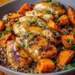 A comforting dish featuring tender chicken, roasted sweet potatoes, and a flavorful maple Dijon sauce, perfect for cozy evenings.